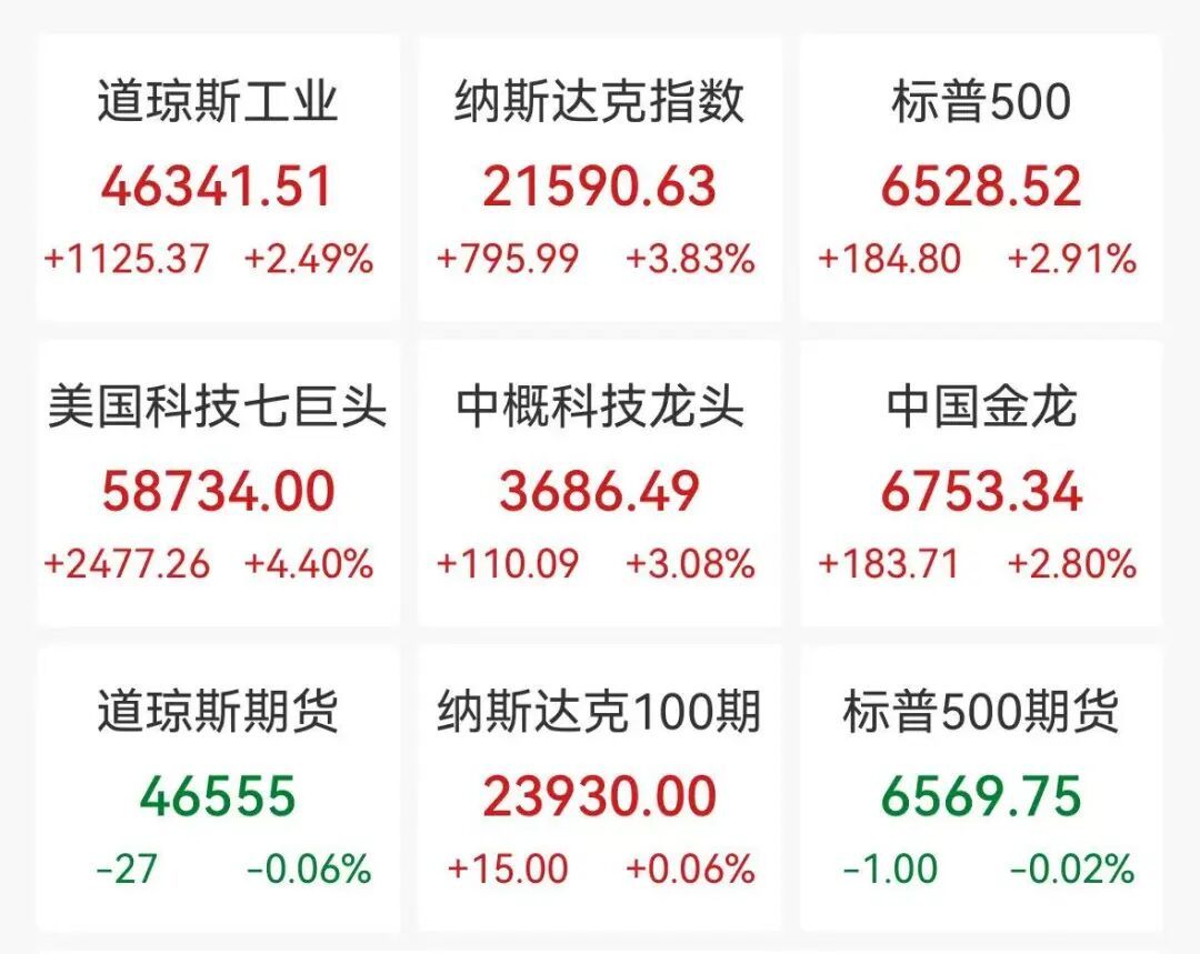 美股科技七巨头集体大涨,META涨6.67%,英伟达、谷歌涨超5%,特斯拉涨4.6%。