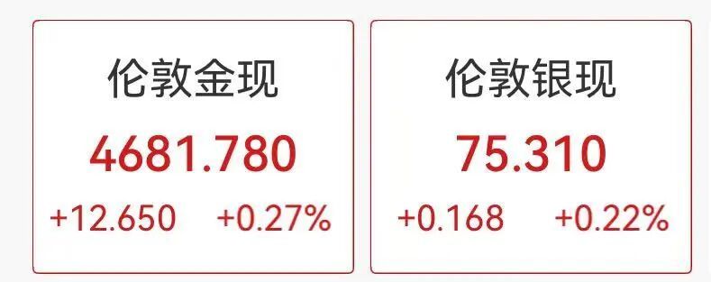 现货金银昨夜强势拉升,黄金涨超3.5%,逼近4700美元关口,白银涨超7%,冲上75美元。今早开盘延续涨势,截至发稿,现货黄金报4681美元/盎司,现货白银报75.3美元/盎司。