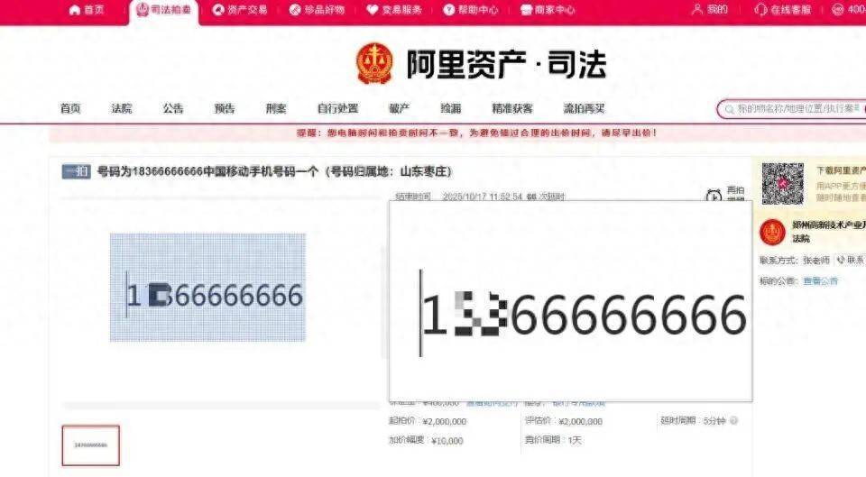 10月17日晚,记者联系郑州高新技术产业开发区法院张法官,其证实称,是办理的案子中涉及的一个手机号,目前法拍已经结束。